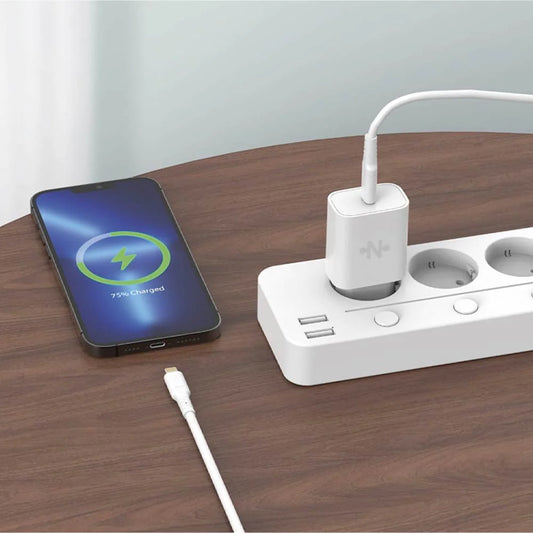 Chargeur Secteur Type-C Charge Rapide 25W +Câble Type-C vers Lightning (1m) Blanc